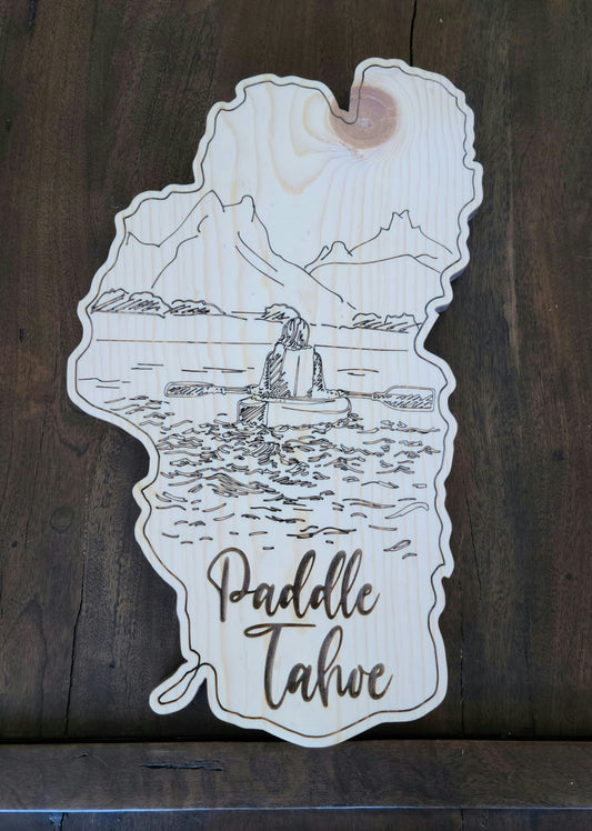 Lake Shaped Paddle Tahoe Engraved Rustic Cutout Sign