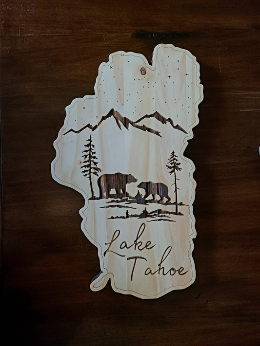 Lake Shaped Tahoe Rustic Cutout Sign with Bears